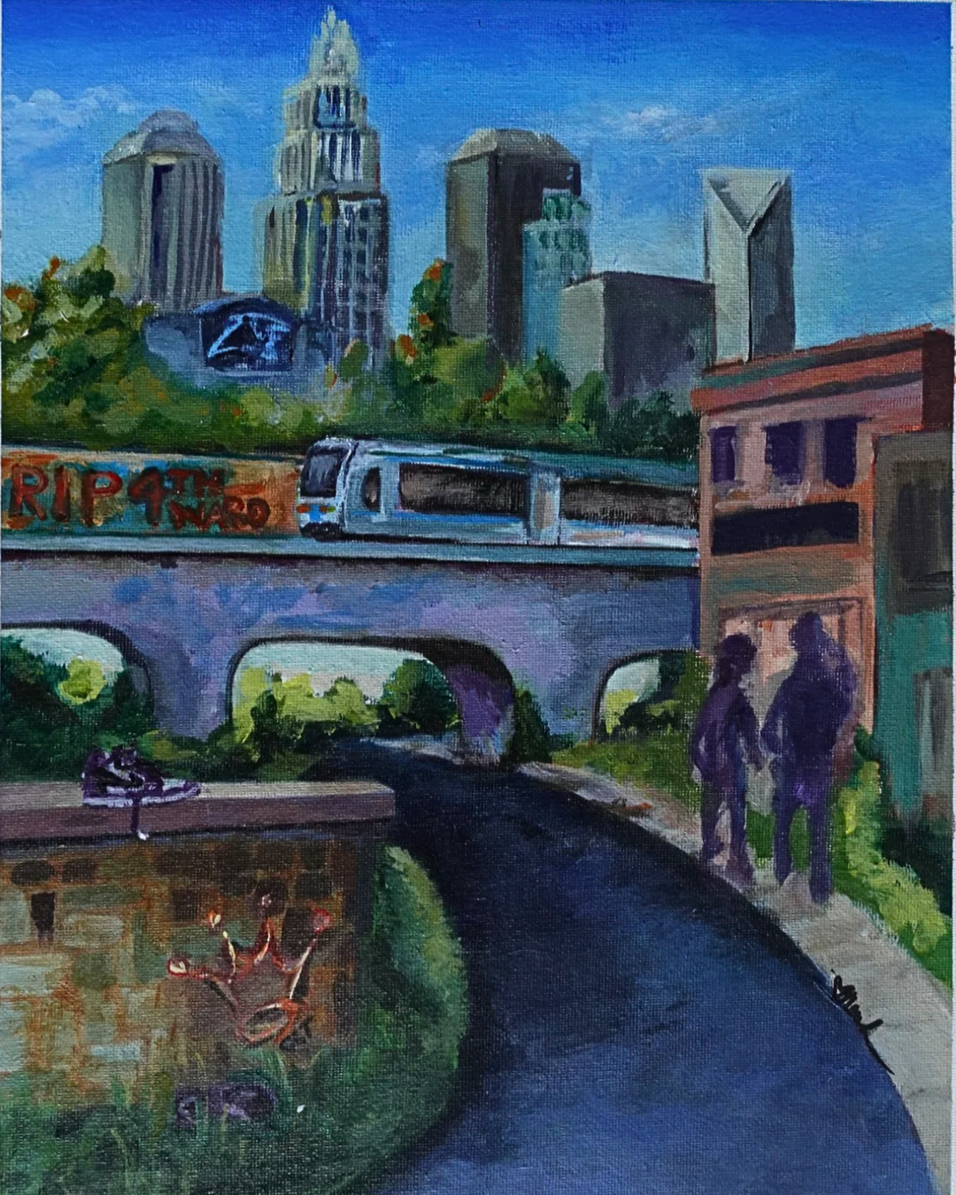 Dear CLT is a love letter and a lament — a portrait of Charlotte that honors its beauty while confronting its transformation. This piece features Charlotte’s recognizable skyline, a light rail in motion, and a layered urban foreground that tells a deeper story. Dear CLT is both a tribute and a testimony.