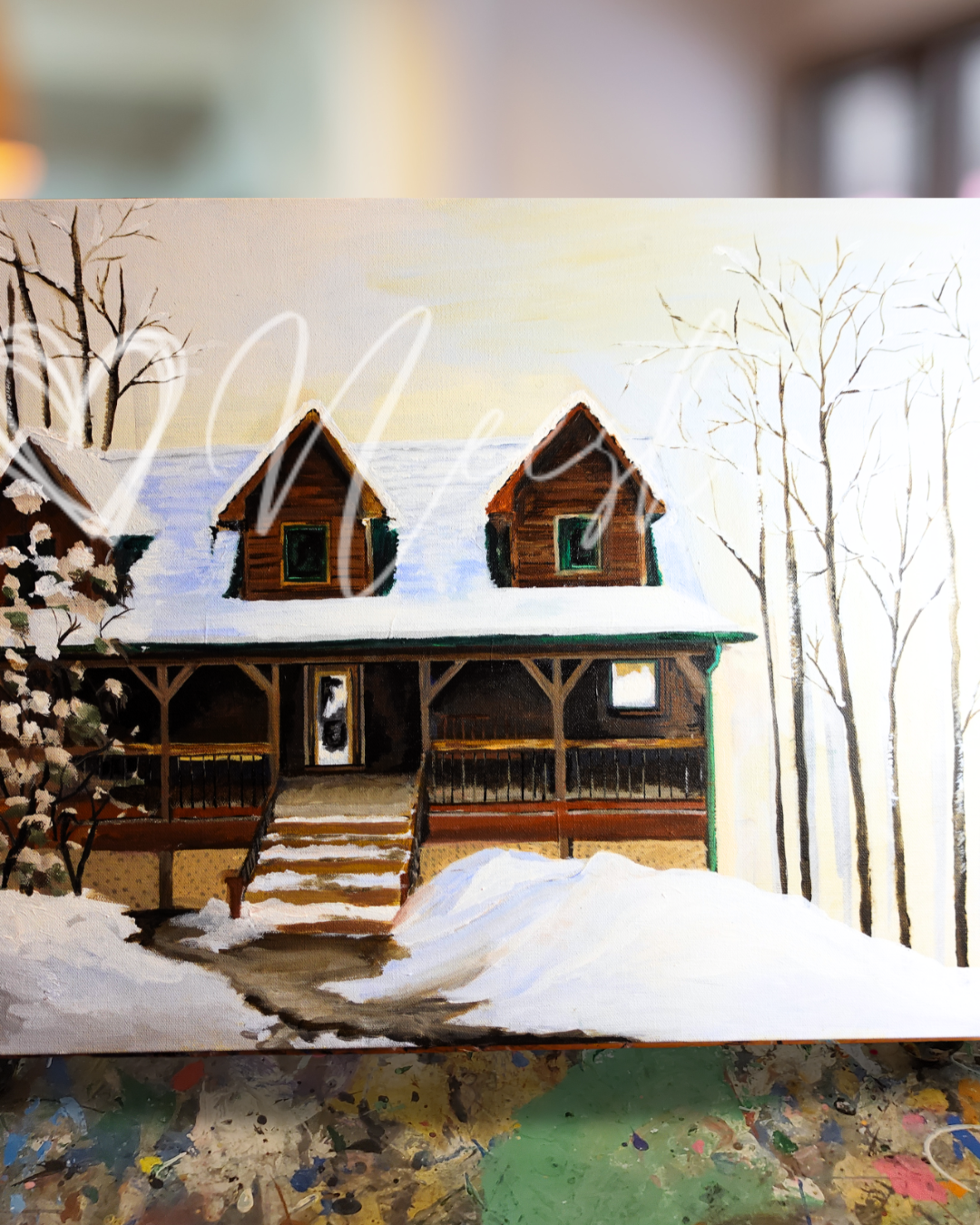 Nesha perfectly captured the rustic beauty of my in-law’s mountain house. The painting was a gift for my in-laws, and they were so surprised and happy to receive such a unique and special gift. They loved her artistic choices on how she represented the trees around the house. The painting turned out even better than I could have imagined. It is cherished by our whole family!